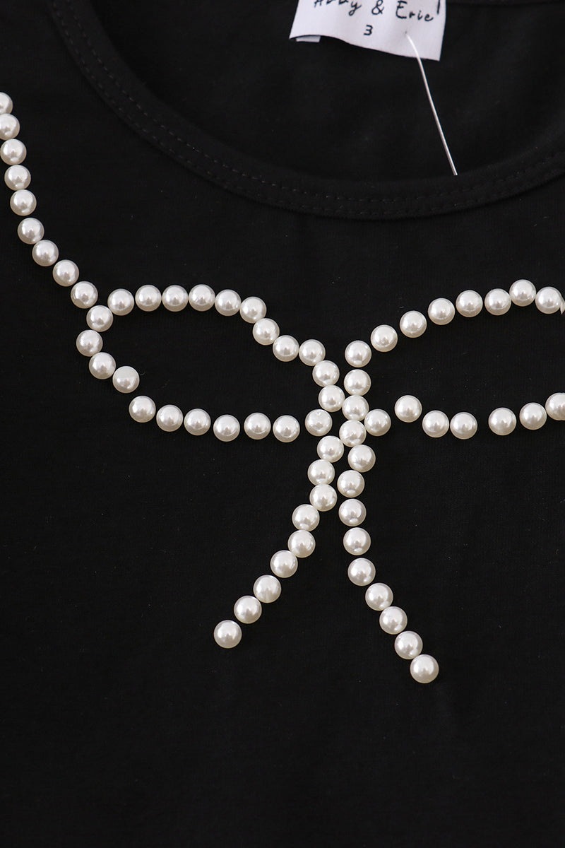 Black pearl bow corduroy skorts set