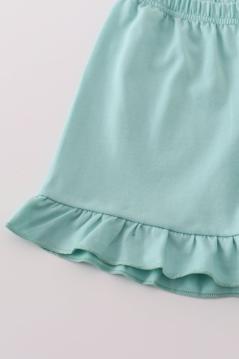 Unit price perDress your little one in this adorable green stripe shorts set featuring a playful puppy hunting embroidery design! Perfect for warm weather adventures, this charming outfit combines comfort with whimsical style. Watch as your child bounces around in this delightful ensemble that's as fun as it is functional!