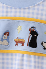 Blue nativity embroidery bubble