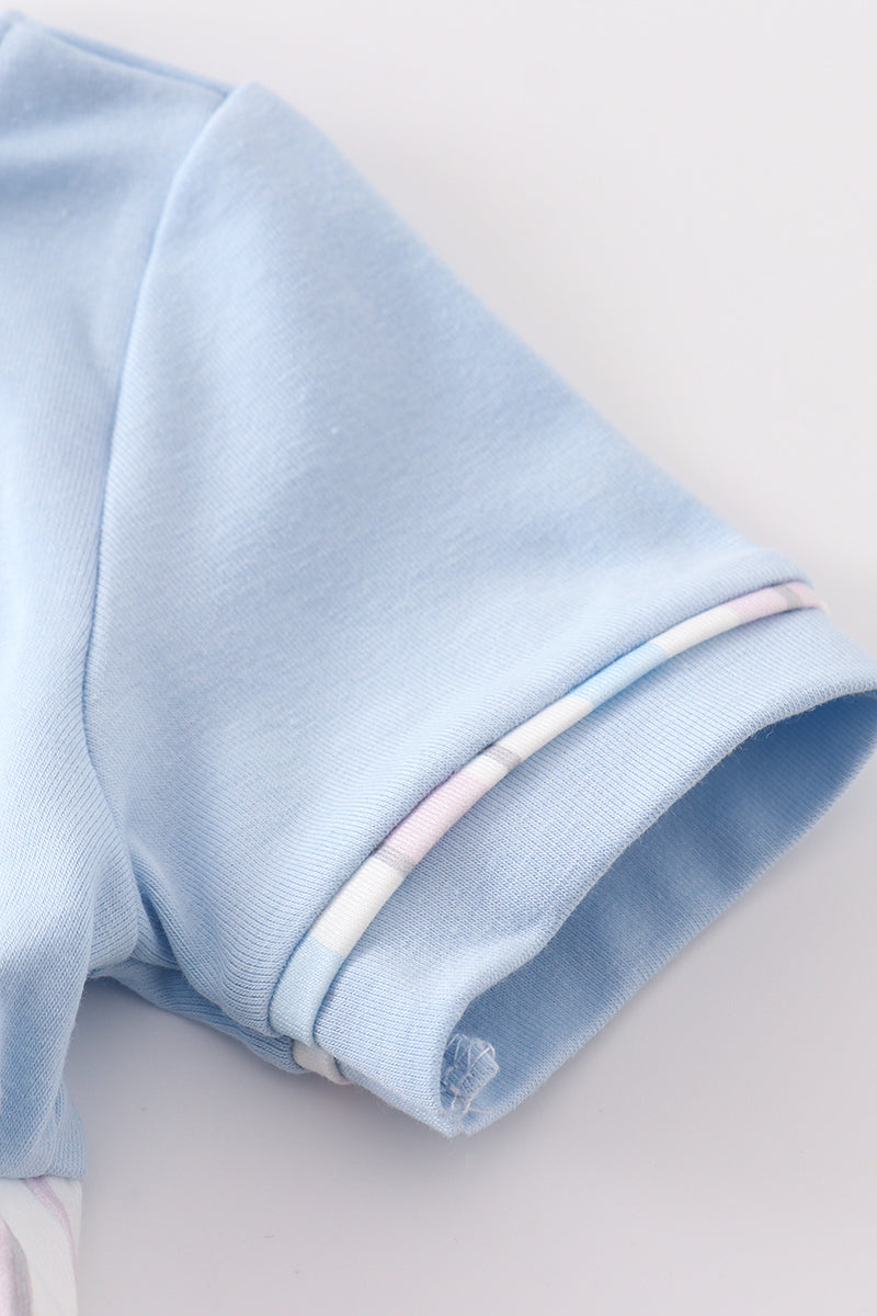 Unit price perGet ready for a seaside adventure with our Crab french knot stripe boy bubble! This charming outfit features playful crab embroidery and a classic striped pattern. Perfect for your little one's summertime fun, this bubble is sure to make a statement (and keep them comfy too)!