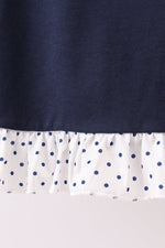 Celebrate the season with this charming navy dress featuring delicate nativity embroidery and playful ruffle details. Its soft fabric and twirl-worthy design make it perfect for festive gatherings and holiday cheer. Dress your little one in joyful style and comfort for memorable moments!