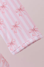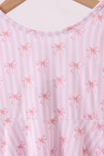 Premium blush bow stripe print ruffle bamboo dress