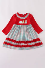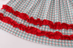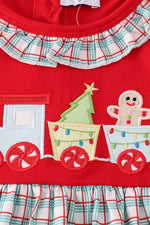 Unit price perThis red gingerbread applique ruffle dress brings festive charm with a playful twist. Featuring delicate gingerbread-themed appliques and flirty ruffles, it’s perfect for spreading holiday cheer in style. Lightweight and fun, this dress adds a touch of sweetness to any special occasion or festive gathering.