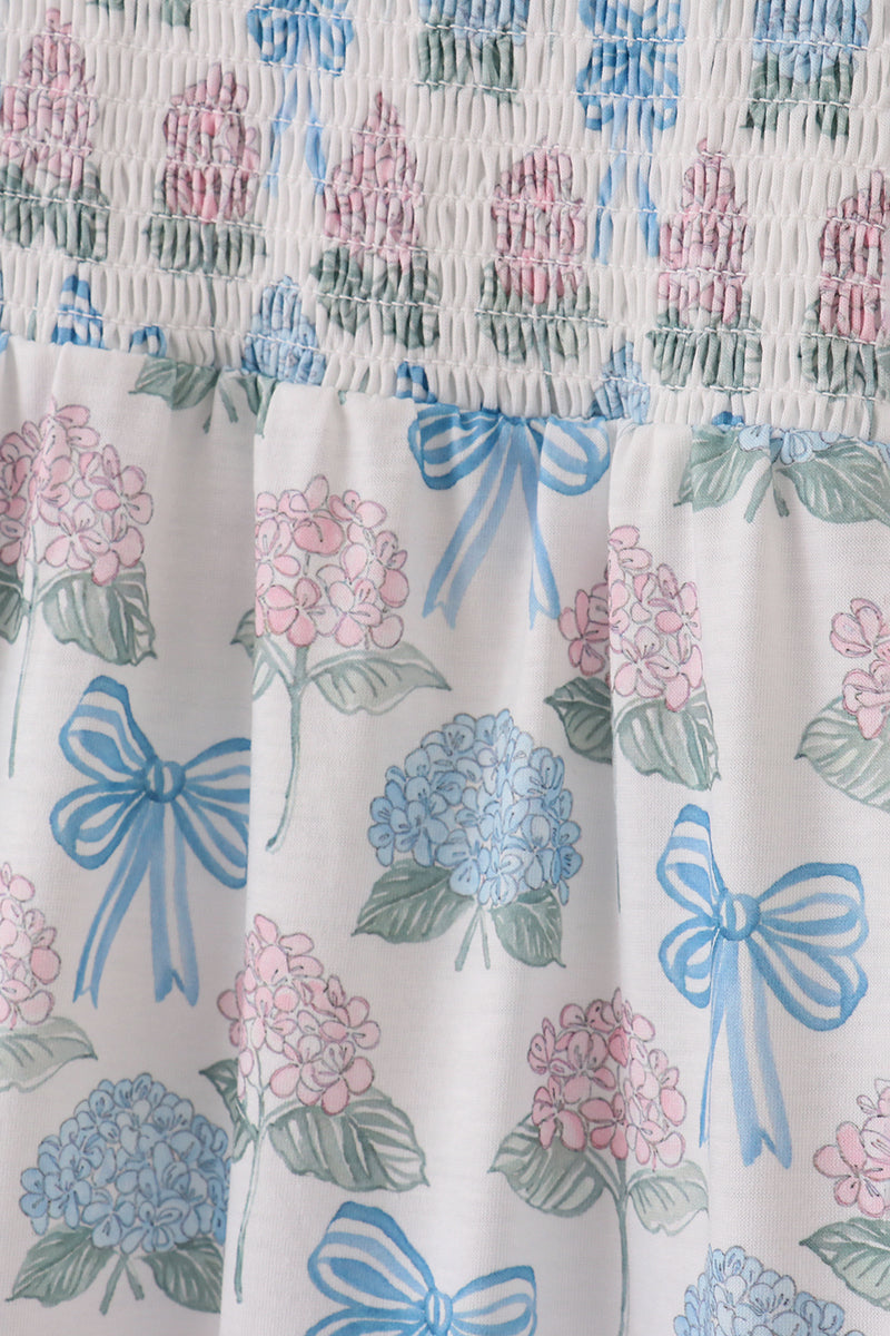 Unit price perDouble the cuteness with this smocked dress for mom and their mini-me! Featuring a beautiful blue hydrangea bow, this dress is perfect for family outings or special occasions. Bring some playful flower power to your wardrobe and match with your little one!