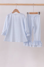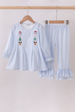 Unit price perGet festive with this Blue Santa Claus Embroidery Ruffle Pants Set! Featuring charming embroidered Santa details and playful ruffles, it’s perfect for adding a cheerful touch to holiday celebrations. Comfortable and cute, this set brings joyful style to any festive occasion.
