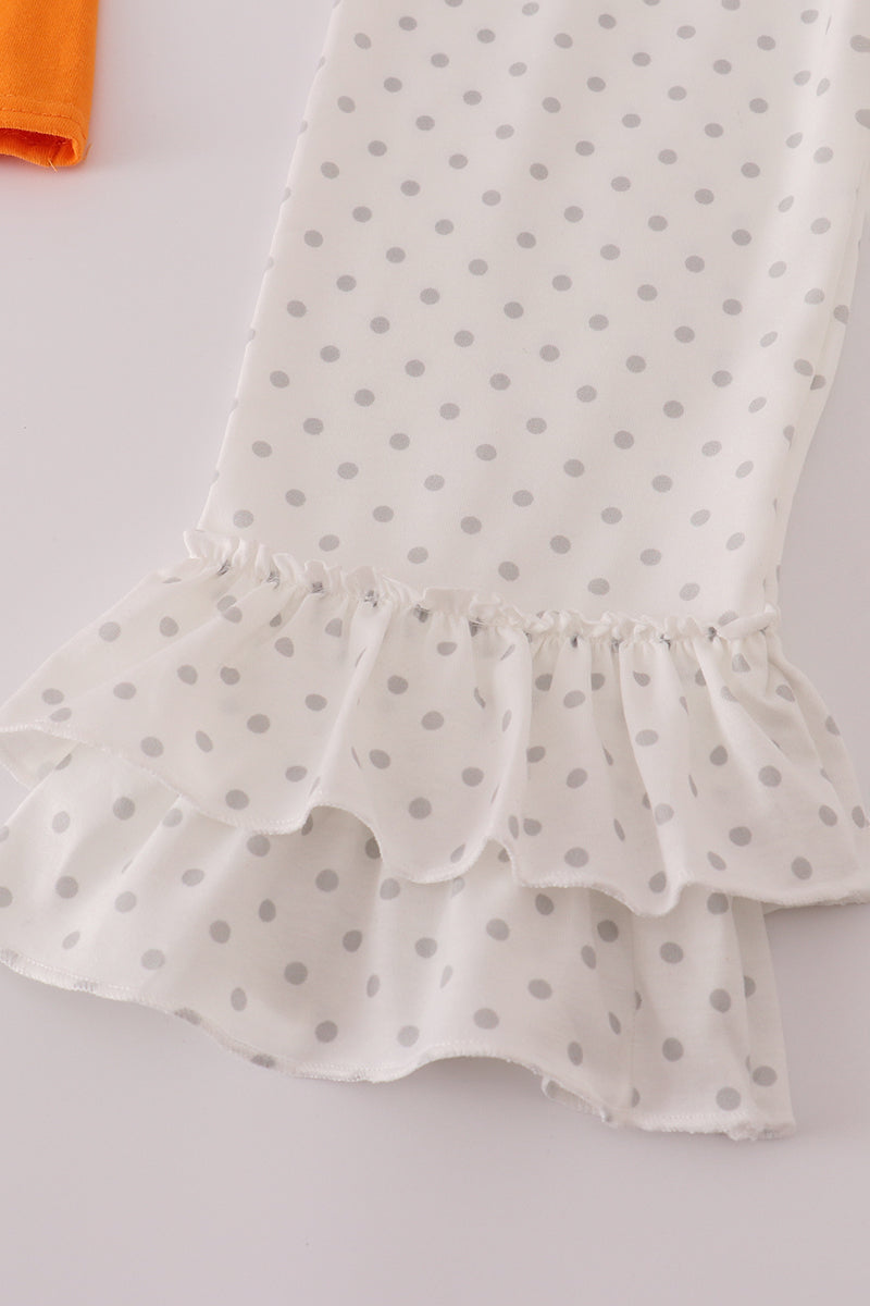 Unit price perShow your team spirit with this playful Orange Tennessee Go Vols embroidery ruffle pants set. Featuring vibrant orange fabric and charming embroidered details, these pants add a fun, spirited touch to any outfit. The ruffle accents bring a flirty, lively vibe perfect for game days or casual wear. Comfortable and cute, this set lets you cheer on your Vols in style and comfort.