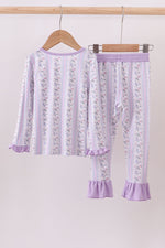 Unit price perSlip into cozy charm with this Lavender Floral Ruffle Bamboo Pajamas Pants Set. Crafted from soft bamboo fabric, it’s gentle on your skin and delightfully breathable for all-night comfort. The playful floral pattern paired with sweet ruffle details adds a fun, feminine touch to your bedtime routine. Perfect for lounging or dreamy sleep, this set makes relaxation feel effortlessly stylish.