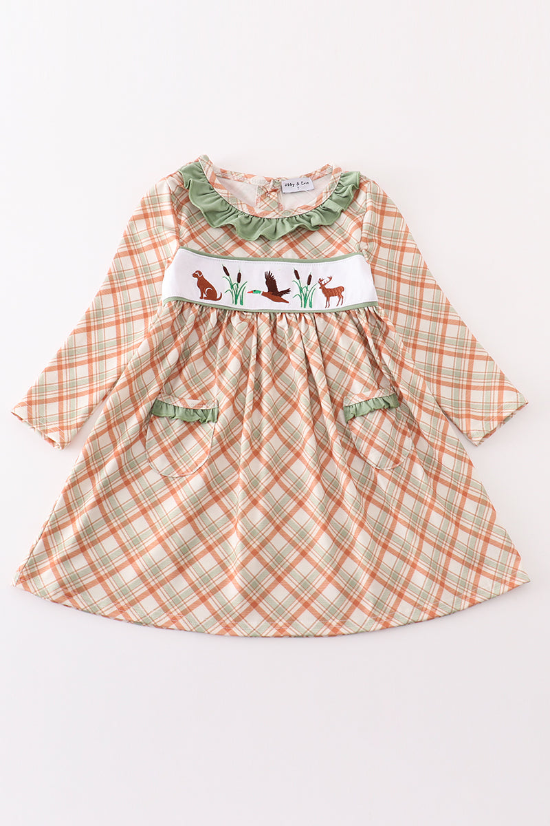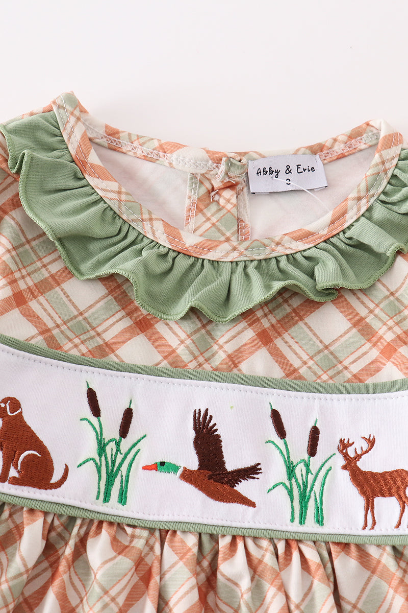 Dress your little hunter in this adorable green duck embroidered dress! Perfect for outdoor adventures or special occasions. "Quack" up your outfit with playful style!