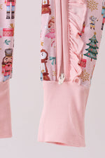 Nutcracker print bamboo ruffle zipper romper