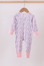 Pink floral bow duck bamboo ruffle zipper romper
