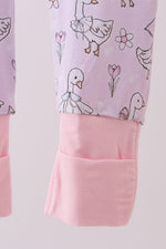 Dress your little one in playful charm with this pink floral bow duck bamboo romper. Soft bamboo fabric keeps them cozy while delicate ruffles add a whimsical touch. The convenient zipper makes dressing easy, and the sweet duck and floral design brings a cheerful flair to any day. Perfect for fun adventures and comfy naps alike!