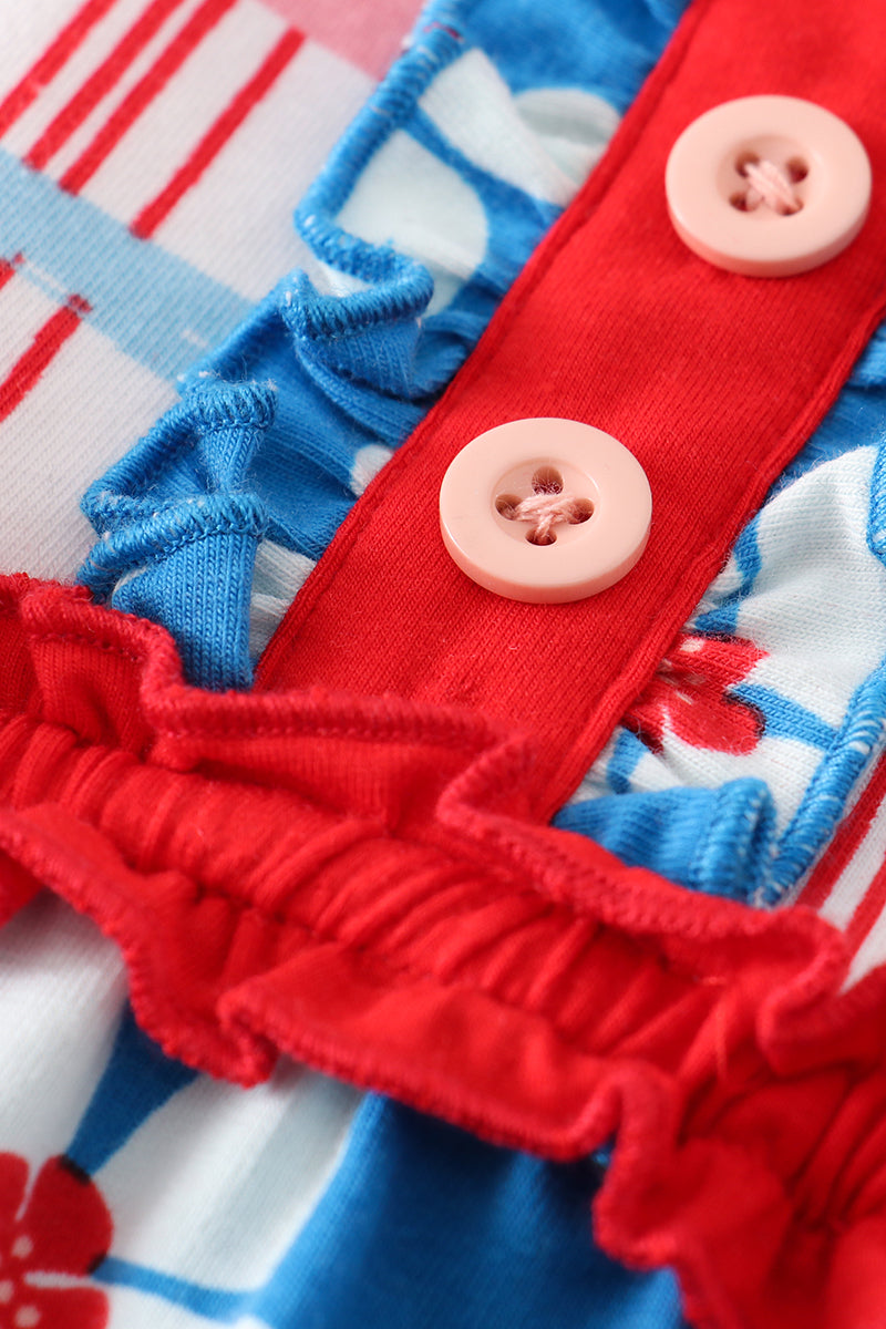 Unit price perGet ready to bloom in style with our Blue & White Floral Print Ruffle Girl Romper! This playful and playful romper features a beautiful floral print and charming ruffles, making it the perfect choice for any fun-filled day. Perfect for the little fashionista in your life!