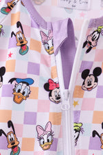 Step into fun and comfort with this premium purple checkered romper, featuring charming character prints. Crafted from soft bamboo fabric, it offers breathable wear perfect for playtime or cozy lounging. The playful design adds a splash of whimsy to any wardrobe while keeping comfort front and center. Ideal for those who love style with a cheerful twist!