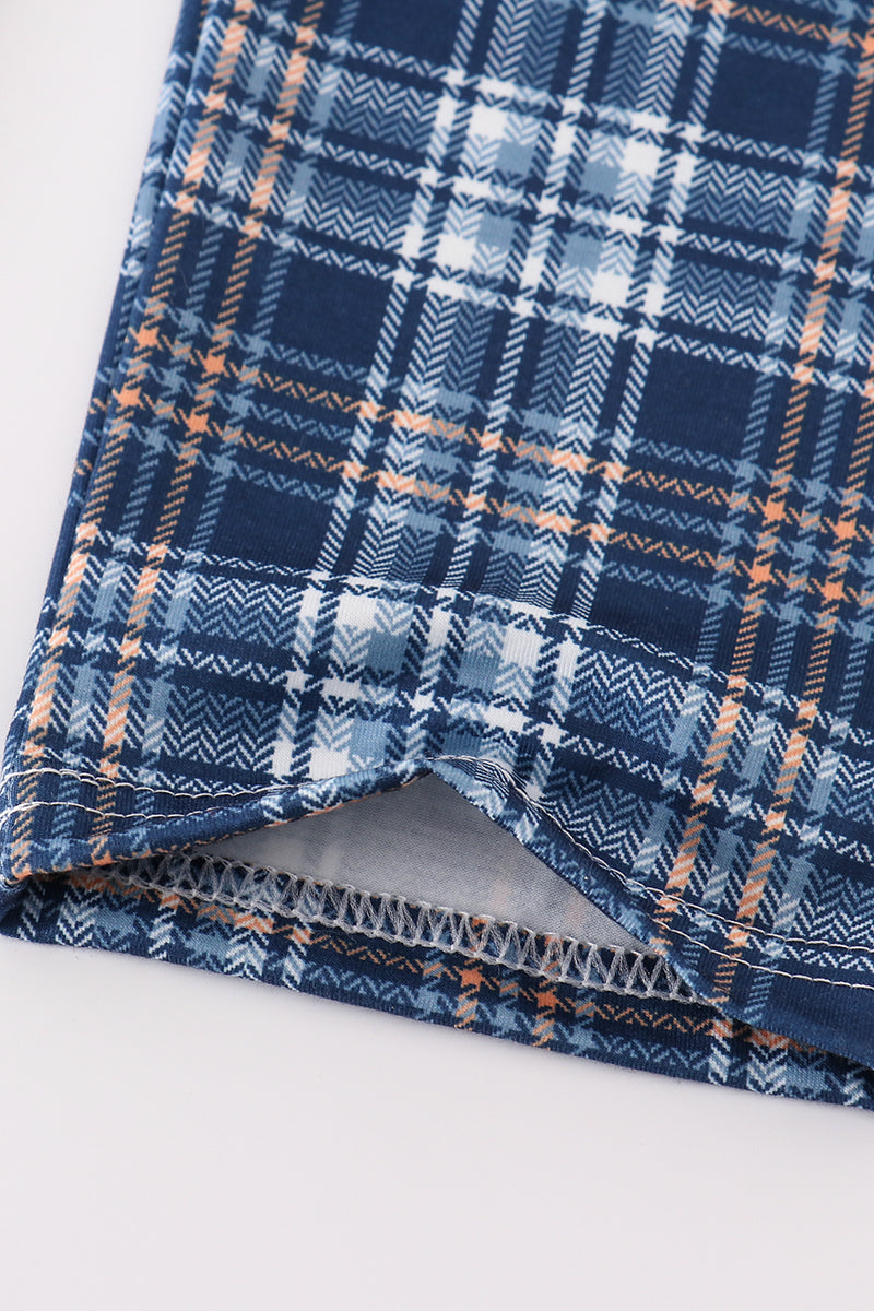Gobble up some fun this Thanksgiving with our blue turkey embroidery plaid boy set! Perfect for any little one, this playful and stylish outfit is sure to make your holiday even more memorable. Don't miss out on this quirky and unique addition to your child's wardrobe.
