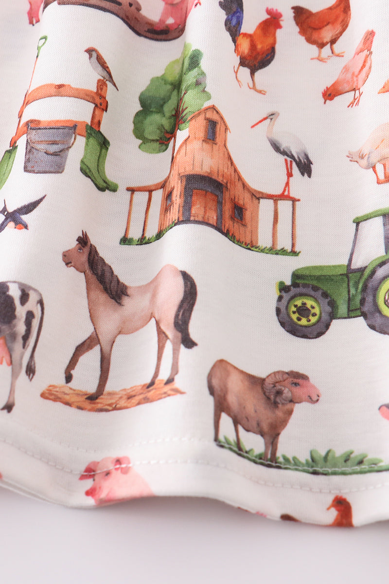 Unit price perGet ready to be the trendiest farmer around with our Khaki Farm Print Bow Girl Set! The cute and quirky bow adds a touch of style to this practical and comfortable outfit. Perfect for a day on the farm or just for some playful fun, this set will have your little one looking and feeling great!